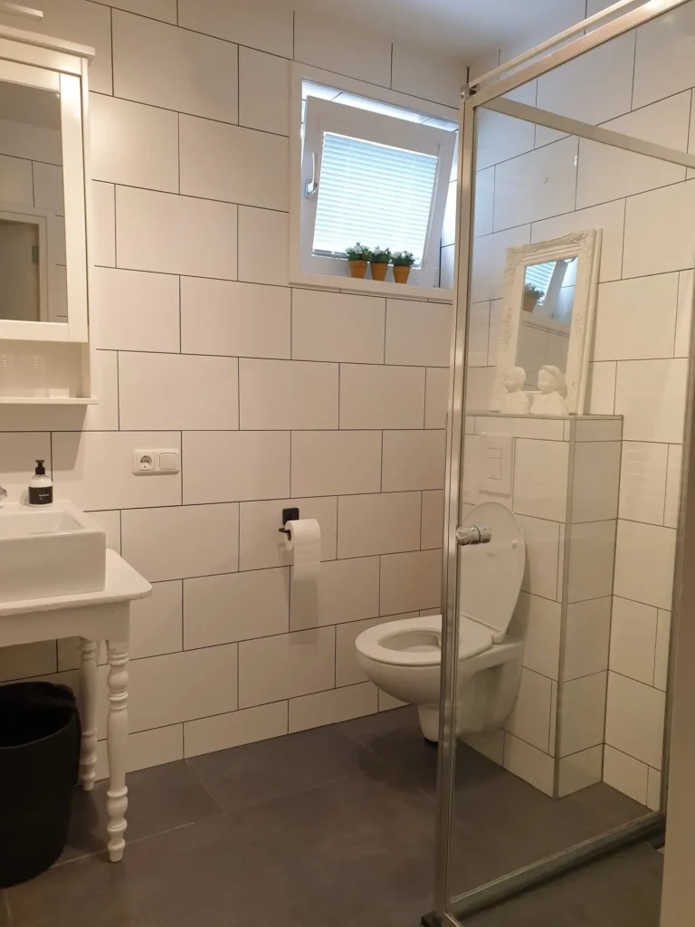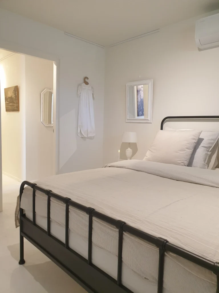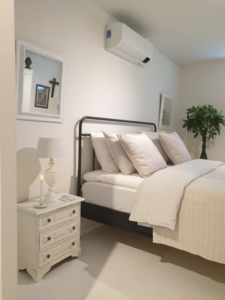 De slaapkamer is voorzien een riant bed, airco en koffer tafel. Ook een steamer en plakroller voor de kleding, extra dekens en kussens ontbreken niet. In de badkamer shampoo en douche creme en een föhn.